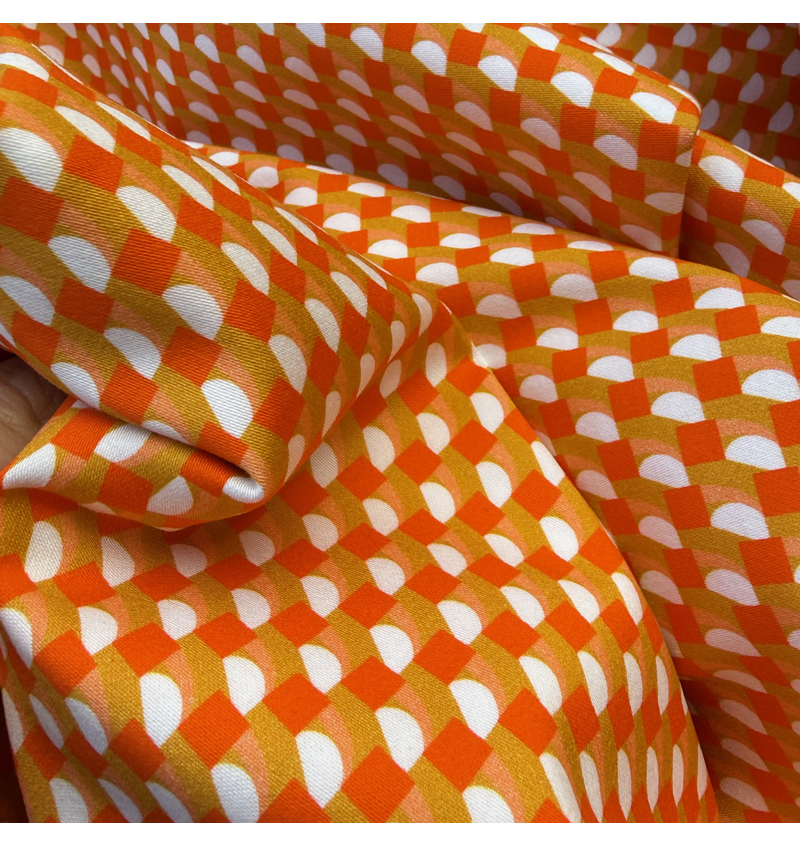 Rasatello di cotone elasticizzato, ideale per realizzare pantalone stile capri, gonne a pieghe, vestiti a tubino.