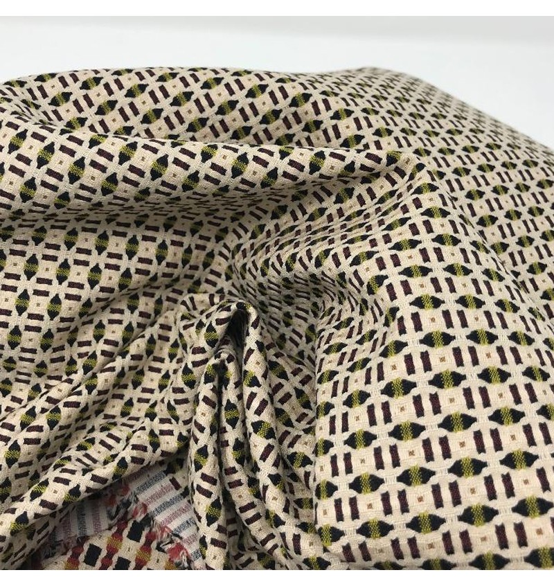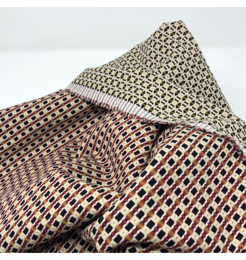 Bellissimo tessuto in microfantasia adatto alla realizzazione di pantaloni, bluse, vestiti, gonne e giacche. Lo puoi usare tutto l'anno; è un tessuto di pesantezza media che si presta anche alla creazione di complementi d'arredo ed accessori.