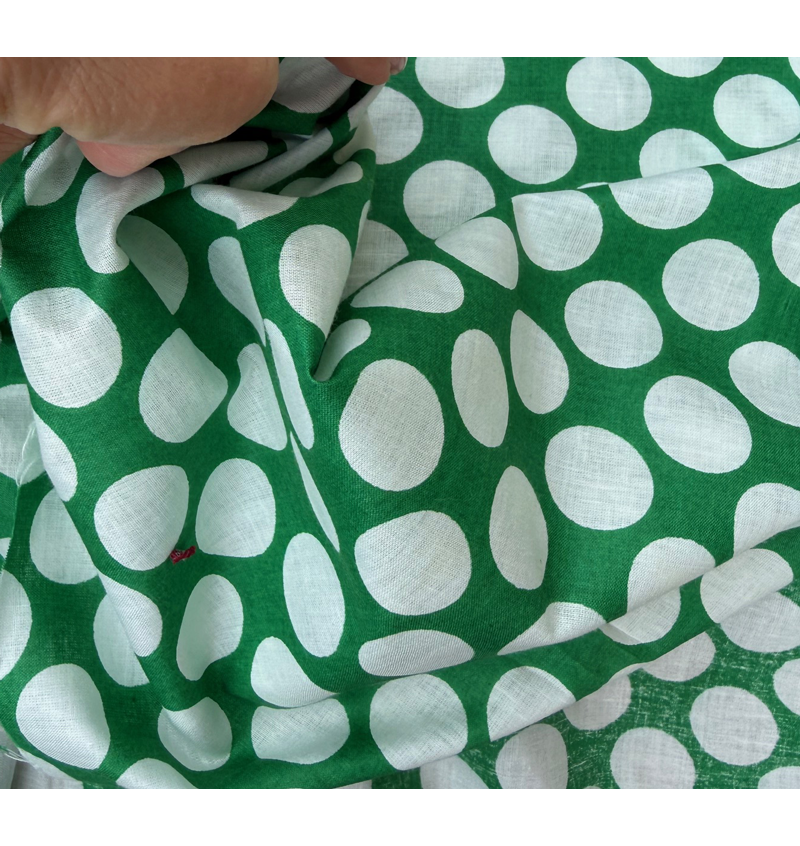 Bellissimo tessuto adatto alla realizzazione di bluse, vesti ampi e freschi, gonne arricciate per la stagione estiva. Questo tessuto ha una stampa irregolare e viene dall'India.
