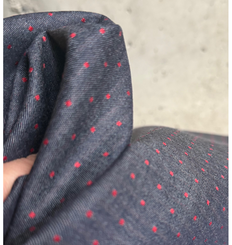 Tessuto in jeans adatto per la realizzazione di camicie, bluse e vesttiti estivi, gonne arricciate.