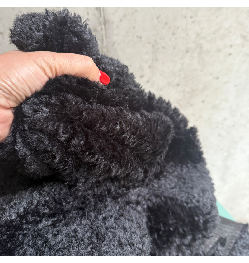 Pelliccia bellissima nera in viscosa, perfetta per capi spalla, cappellini, accessori pazzeschi.