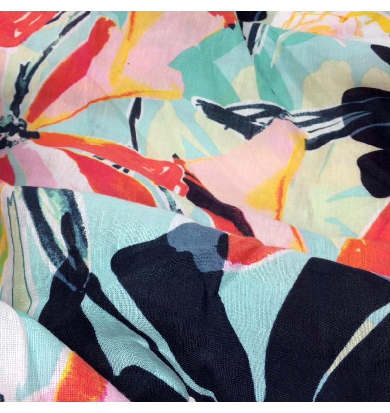 Tessuto in lino 100% perfetto per realizzare capi estivi, freschi e colorati per tutta l'estate. Potete utilizzare questa stoffa anche per realizzare complementi d'arredo per la vostra casa.