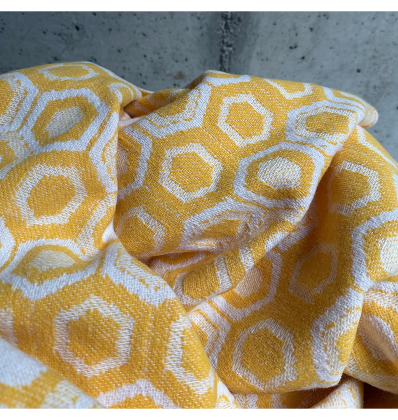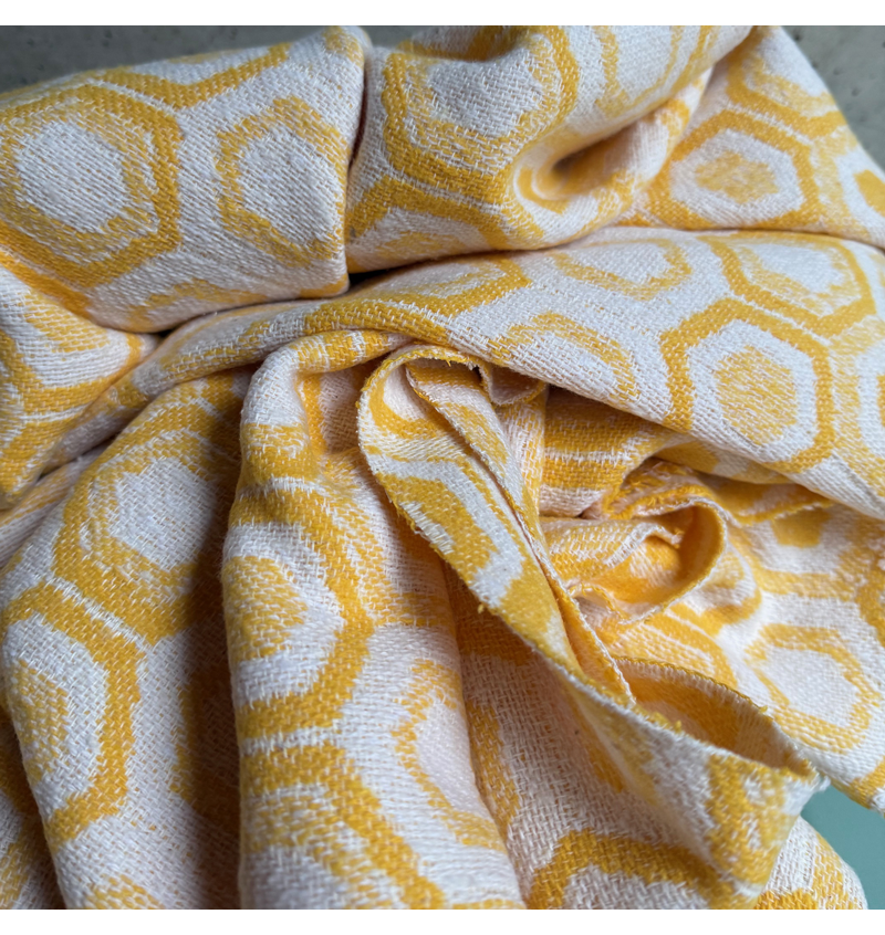 Bellissimo e morbido tessuto adatto per la realizzazione di completi, vestitini per la mezza stagione e per la stagione estiva. Questa lavorazione jacquard ricorda molto gli anni 70.